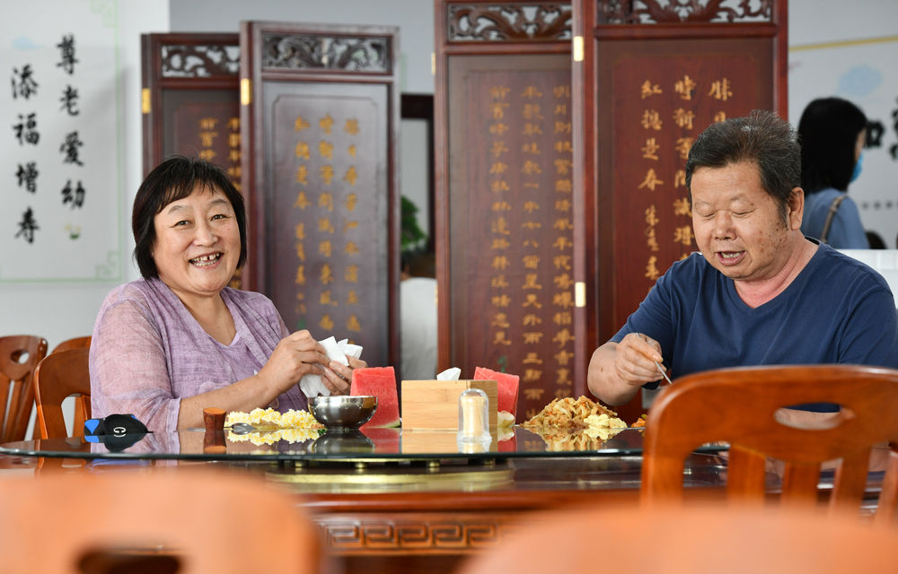 2019年起,天津市開始建設(shè)“老人家食堂”,為老年人提供安全、方便、實(shí)惠的助餐服務(wù)。這是2020年7月7日,老人在西青區(qū)精武鎮(zhèn)付村康養(yǎng)中心“老人家食堂”用餐。
