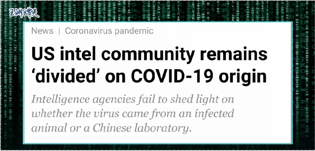 △美國情報(bào)界在新冠病毒起源上仍然存在分歧