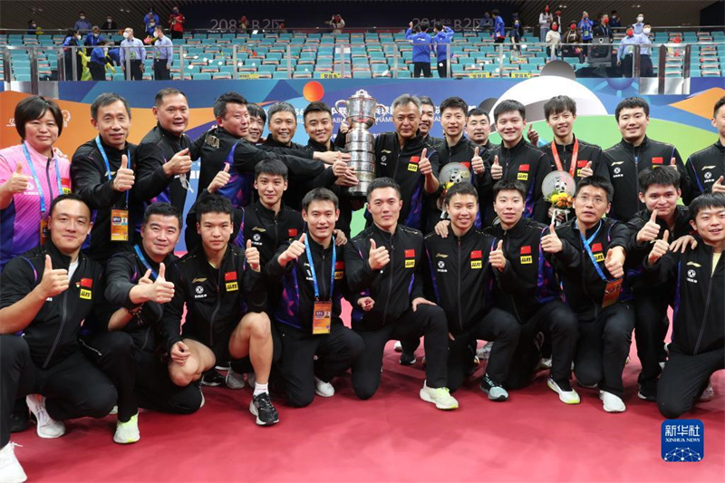 9日,在成都進行的2022年第56屆世界乒乓球團體錦標賽落幕,中國男隊在決賽中以3:0戰(zhàn)勝德國隊,實現(xiàn)十連冠的同時第22次捧起斯韋思林杯。