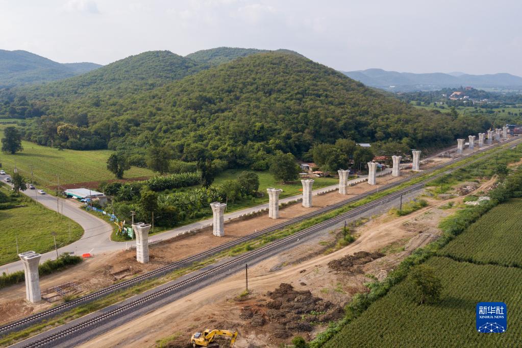 這是位于泰國呵叻的中泰鐵路建設(shè)現(xiàn)場(2022年9月7日攝,無人機(jī)照片)。新華社記者 林昊 攝