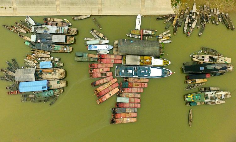 這是2019年12月17日在湖南常德漢壽縣蔣家嘴鎮(zhèn)拍攝的?吭诙赐ズ叺臐O船(無人機(jī)照片)。2020年1月1日零時(shí)起,長江流域332個(gè)自然保護(hù)區(qū)和水產(chǎn)種質(zhì)資源保護(hù)區(qū)全面禁止生產(chǎn)性捕撈。長江流域各地重點(diǎn)水域也相繼進(jìn)入為期十年的常年禁捕期。