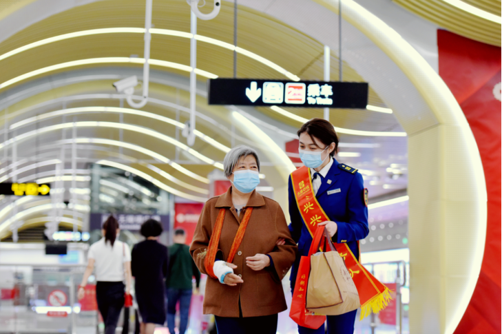 (圖)太原地鐵2號線客運服務人員助老出行