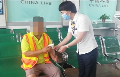 中國(guó)人壽壽險(xiǎn)許昌市建安區(qū)支公司客戶服務(wù)中心門(mén)前,一位清潔工大叔正冒雨清理路面上的垃圾,使路邊的下水道能正常排水。眼看雨越下越大,大叔的衣服濕透了,臉上的雨水混著汗水落下來(lái)。看到這一幕,柜員武彩芳趕忙跑出去,將大叔請(qǐng)進(jìn)大廳里面避雨。進(jìn)來(lái)后,大叔卻遲遲不愿坐下休息,“姑娘,俺這衣服太臟了,該把椅子也弄臟了……”聽(tīng)到這里,武彩芳的眼眶濕潤(rùn)了。“沒(méi)關(guān)系,椅子臟了可以擦。您每天起早貪黑,那么辛苦,為我們工作和生活創(chuàng)造好的城市環(huán)境,您是我們的榜樣!闭f(shuō)著,武彩芳忍住眼淚把大叔按到座椅上。