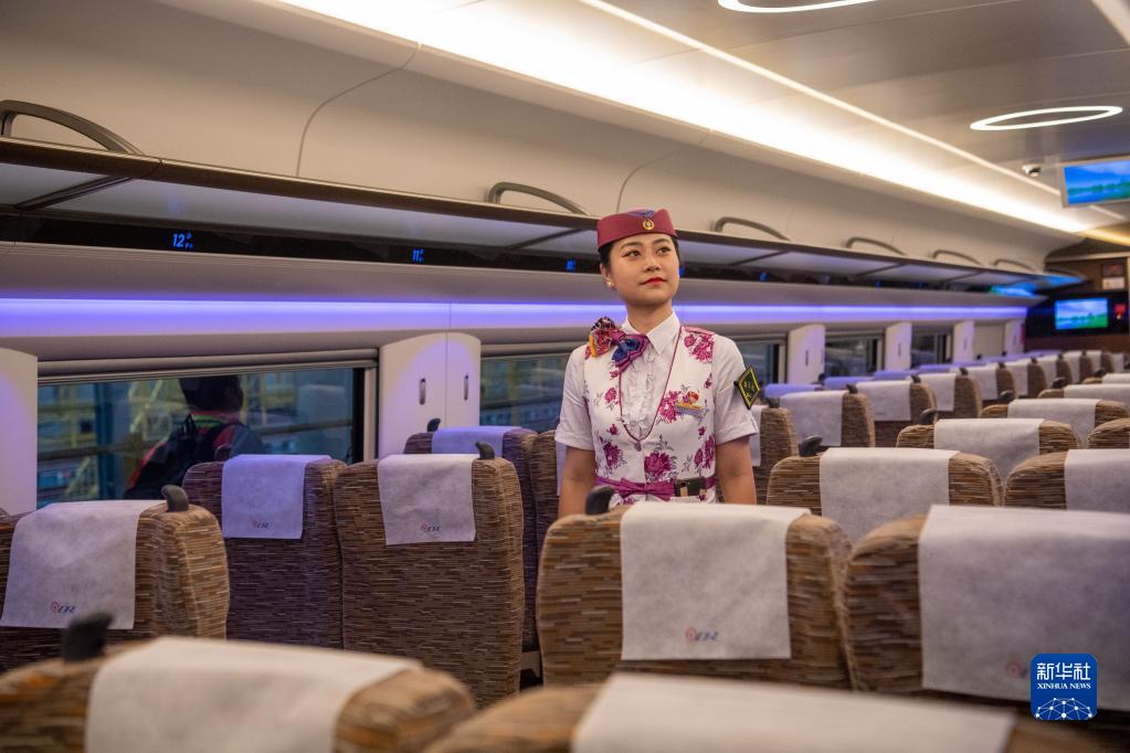 2022年6月20日,鄭渝高鐵首發(fā)列車G52次列車動(dòng)車組人員正在等待乘客上車。 新華社記者 陳青冰 攝