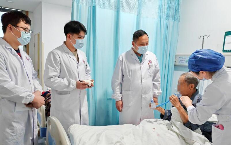 2月2日,湖南省人民醫(yī)院胸外科佘科霖主任團隊查看患者情況。新華社發(fā)