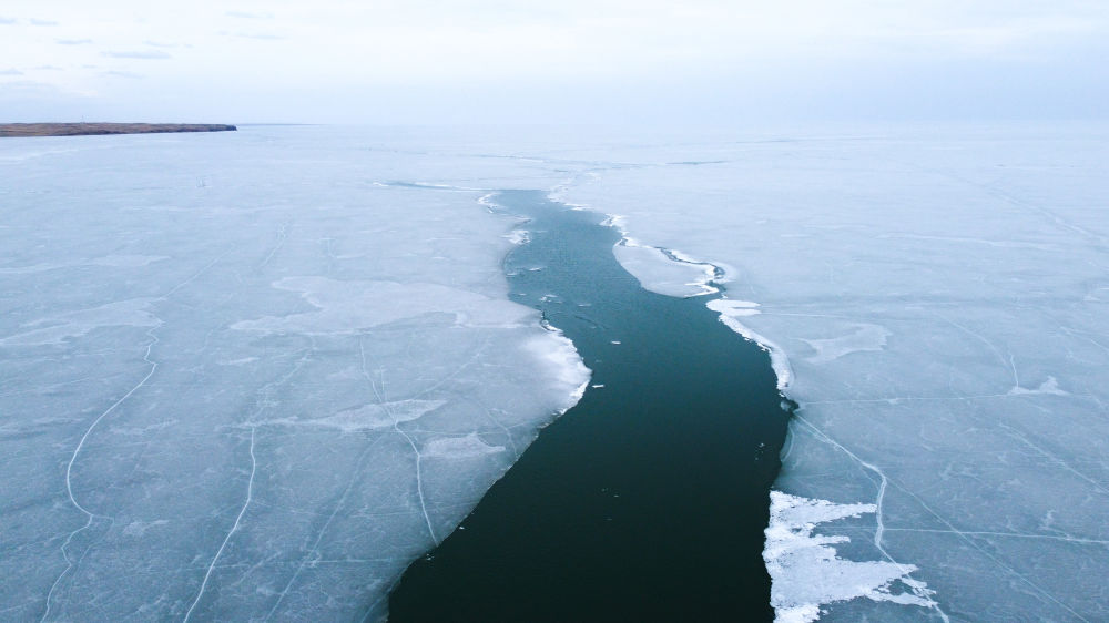 這是2023年4月17日拍攝的呼倫湖開湖景象(無人機照片)。新華社記者 王楷焱 攝