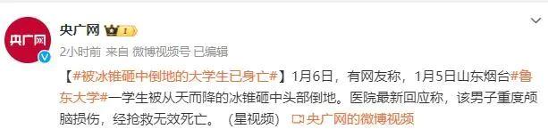 有目擊者稱,事發(fā)時看到冰塊掉落,出言提醒但已來不及。冰塊有雙人床般大小,形狀不規(guī)則。當(dāng)時被砸學(xué)生想躲但是并沒有躲開。被砸后該學(xué)生頭部受傷,口鼻噴血。