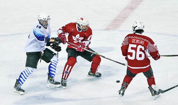 第十四屆全國冬季運(yùn)動會(以下簡稱“十四冬”)男子冰球青年組比賽激戰(zhàn)正酣,香港隊(duì)首戰(zhàn)4:1力克天津隊(duì)、次戰(zhàn)9:3完勝吉林隊(duì),取得小組賽兩連勝。當(dāng)終場哨響時(shí),隊(duì)員們激動地相擁慶祝的一幕令人動容。