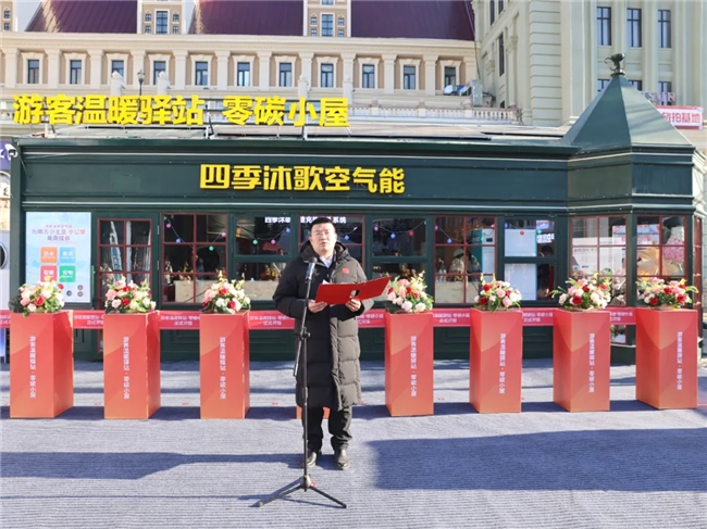 四季沐歌集團(tuán)總裁李駿在儀式講話中指出,此次將溫暖驛站升級(jí)為溫暖驛站零碳小屋,一是希望全方位發(fā)揮窗口示范作用,以熱情周到的服務(wù)為每一位游客驅(qū)散寒意、送上暖意;二是為踴躍投身公益的青年志愿者搭建平臺(tái),公益之心在此匯聚;三是將其作為廣大青少年探索環(huán)保知識(shí)、踐行低碳理念的科普實(shí)踐基地,將哈爾濱整座城市堅(jiān)持綠色低碳發(fā)展的理念傳至五湖四海。