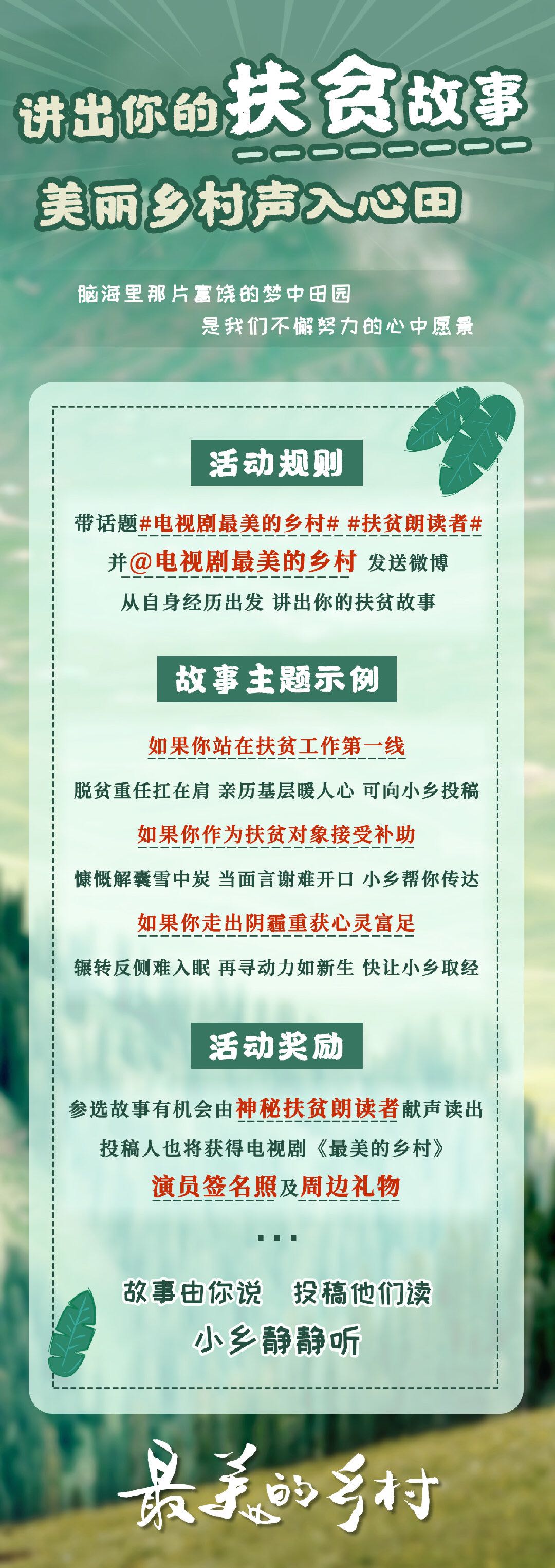 6月6日晚,由河北省組織創(chuàng)拍反映決勝全面小康、決戰(zhàn)脫貧攻堅(jiān)題材的30集電視連續(xù)劇《最美的鄉(xiāng)村》在中央廣播電視總臺(tái)綜合頻道與觀眾見面。如果你站在扶貧工作第一線,或是你作為扶貧對(duì)象接受補(bǔ)助……,投稿你的扶貧故事,將有機(jī)會(huì)得神秘禮物。具體參與方式如下,快來參加吧!