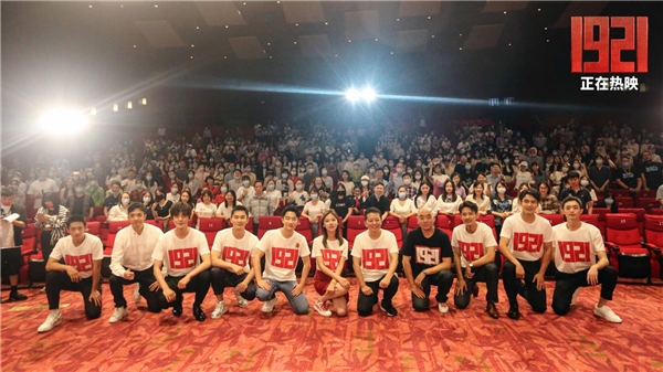 在首映當(dāng)日,每場觀影互動結(jié)束后,主創(chuàng)們都會和在場的所有觀眾一起唱響一首歌——《沒有共產(chǎn)黨沒有新中國》,以歌聲訴衷情,為中國共產(chǎn)黨百年華誕獻(xiàn)上自己飽含著深情的祝福與告白。整齊而洪亮的歌聲響徹“七一”當(dāng)日上海的多個放映廳,令在場的所有人熱血沸騰。“沒有共產(chǎn)黨,就沒有新中國”絕不是一句口號,它背后是無數(shù)先輩年輕時揮灑的青春熱血,是一代代為了沖破舊世界甘愿犧牲的共產(chǎn)黨人,他們秉承“有一分熱,發(fā)一分光”的信念,點燃信仰的火種。而今他們的理想早已星火燎原,赤旗插滿華夏大地。